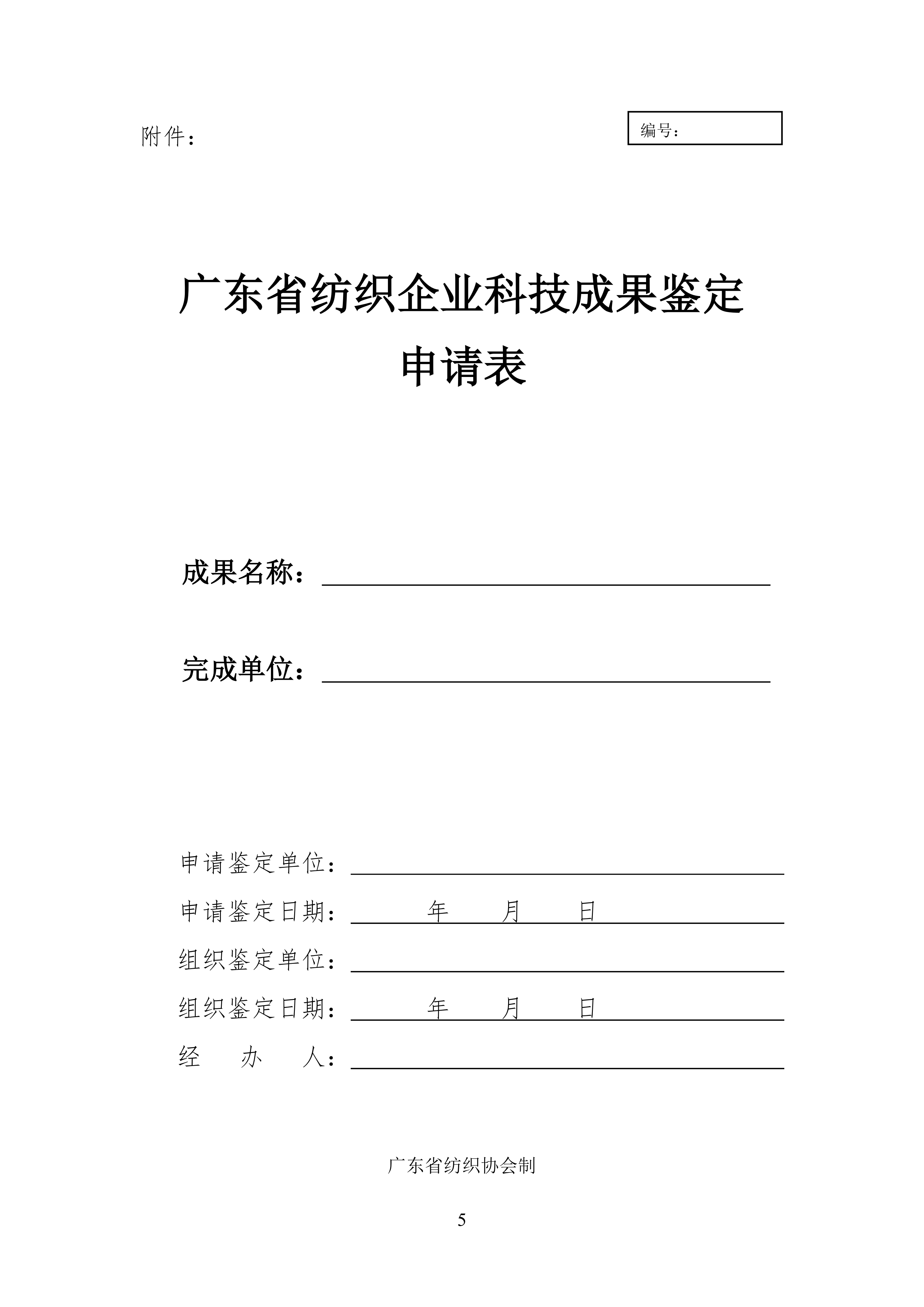 (一)《广东省纺织企业科技成果鉴定申请表》。