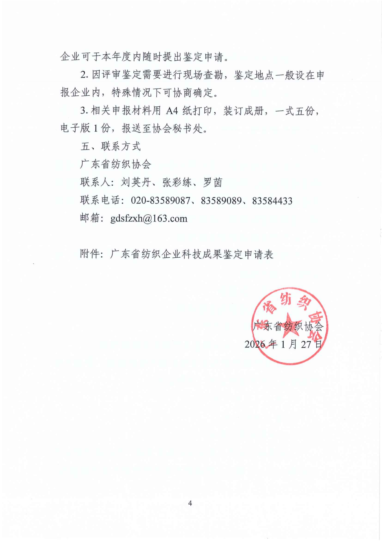 为促进企业实现科技成果转化,引导企业精准定位产品及市场需求,推进企业在产品工艺、技术、功能性等方面的研发和投入,以科技赋能提升产品竞争力,广东省纺织协会(以下简称“协会”)于2026年继续开展行业企业科技成果鉴定工作,有关申报要求通知如下: